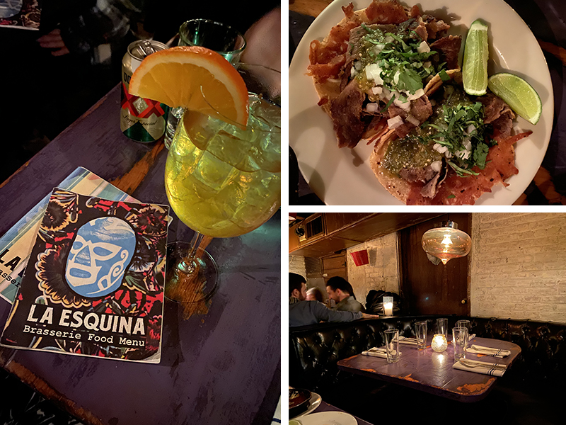 La Esquina é muito mais que um restaurante/bar no Soho/Nolita. Pra começar, ele fica escondido no subsolo de uma antiga taqueria e é preciso passar por um segurança, descer uma escadaria e passar pela cozinha para chegar lá. O ambiente parece uma caverna, é MUITO animado, a música é BEM alta (tem DJ) e além das mesas para o jantar existe ainda um lounge com bar e pista de dança. O menu é todo mexicano com pratos clássicos da culinária, cervejas, sangria e drinks de tequila. A comida é maravilhosa e a gente AMOU estar em um ambiente diferente, descolado, animado, com um público super local e bem arrumado. É fundamental fazer reserva com antecedência pois elas são disputadíssimas.